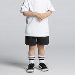 Construction: Sweat shorts, self-fabric elasticated waistband, tonal internal drawcord, 2 side pockets, single pocket at back, double needle hems